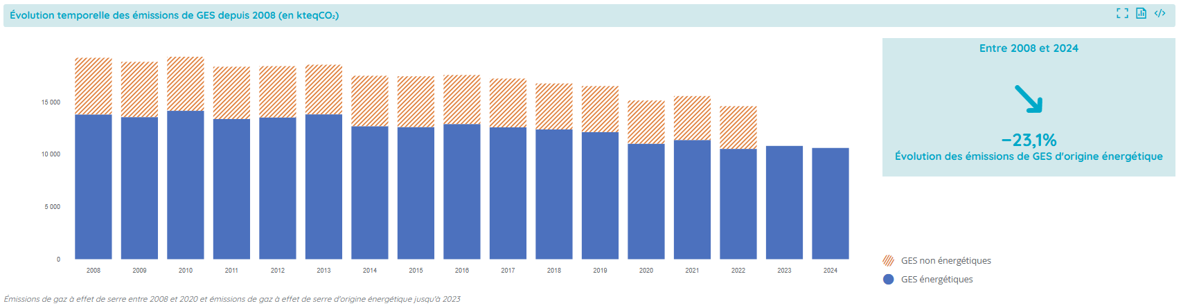 Les données régionales Air-Climat-Énergie couvrent désormais toute la période de 2008 à 2024, avec l’ajout des deux dernières années.